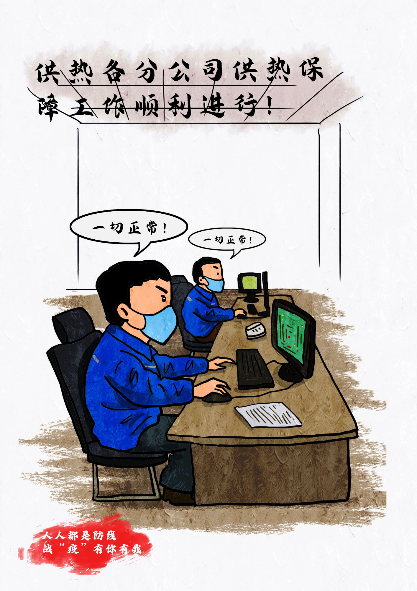 今天,城市燃熱集團(tuán)職工高帆手繪了一組組集團(tuán)抗疫保供的漫畫鏡頭,記錄溫暖感人的瞬間。