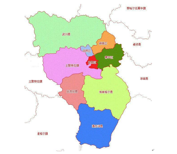 呼和浩特中心城區(qū)含賽罕區(qū)、新城區(qū)、回民區(qū)、賽罕區(qū)和兩個(gè)國(guó)家級(jí)經(jīng)濟(jì)開發(fā)區(qū)金川開發(fā)區(qū)、如意開發(fā)區(qū))。
