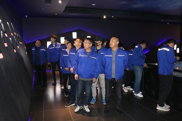 活動中,大家先是參觀了大青山紅色文化公園的勵志廣場和歷史展廳。其中歷史展廳以“大青山里的革命故事”為展示主題,分為三個展廳?!洞笄嗌降貐^(qū)革命英烈》展廳以“山高人為峰”為設計理念,突出由290位先烈與前輩所組成的山造型,通過多媒體手段輔助氛圍,用模型蠟燭點綴悼念革命英烈及革命前輩的悲壯雄偉與功勛卓著?!洞笄嗌降貐^(qū)革命史展覽》展廳以“正觀·背看”為特色,正觀--從展廳入口望去,展覽山體造型由低到高宛如群山疊疊展開,大青山的氣勢一覽無余;背看--觀眾進入“山”中,隨著光線由昏暗向明亮的變化,大青山革命史內(nèi)容也由艱難革命向輝煌成就依次展開,展桌、展板、多媒體等在山中構(gòu)成了基礎展示形式,大型雕塑場景以及歷史環(huán)境再現(xiàn),充分的表達了“大青山里的革命故事”這一主題?!洞笄嗌降貐^(qū)革命前輩》展廳,向我們展示為了大青山地區(qū)的解放做出重大貢獻的諸多革命前輩。