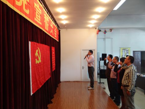 會場肅穆莊嚴,主席臺正中懸掛著中國共產(chǎn)黨黨旗。在雄壯的《國際歌》聲中,儀式拉開了序幕,四名預(yù)備黨員在黨小組長的帶領(lǐng)下,緊握右拳,面對黨旗莊嚴的進行了宣誓,表達了為共產(chǎn)主義事業(yè)奮斗終生的決心。儀式結(jié)束后,預(yù)備黨員代表張學(xué)文進行了發(fā)言,表達了能成為中國共產(chǎn)黨一員的激動和光榮,同時也深切感受到了責(zé)任感和使命感,今后要時刻以黨員標(biāo)準(zhǔn)嚴格要求,努力工作,堅定信念,為黨的事業(yè)努力奮斗,再立新功。