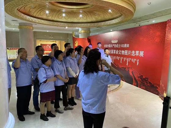 在博物院二樓展廳內(nèi),黨支部書記郭依群同志率先帶領(lǐng)大家重溫入黨誓詞,銘記初心使命,并齊聲高唱《沒有共產(chǎn)黨就沒有新中國》紅歌,表達愛國愛黨的熱烈情懷。隨后在講解員的帶領(lǐng)下大家認真聆聽學習了革命先輩的光輝事跡,一幅幅生動的照片、一件件厚重的實物、一個個感人的故事,無不再現(xiàn)了中國共產(chǎn)黨人百年奮斗的不屈精神和輝煌成就。
